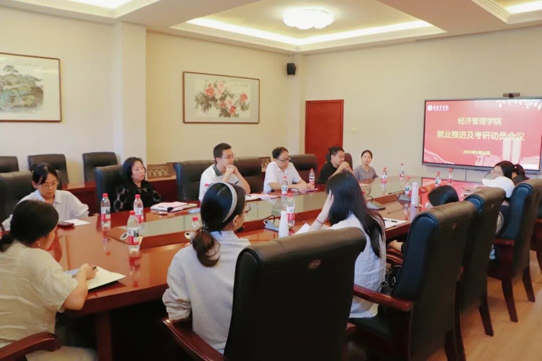 9月24日,经济管理学院在博学楼大会议室召开2026届毕业生就业推进会议,安排毕业生发展重点工作。经济管理学院院长刘利华、副院长宋科、副书记郑容出席会议并部署具体工作,会议由学院党总支书记宋扬主持。