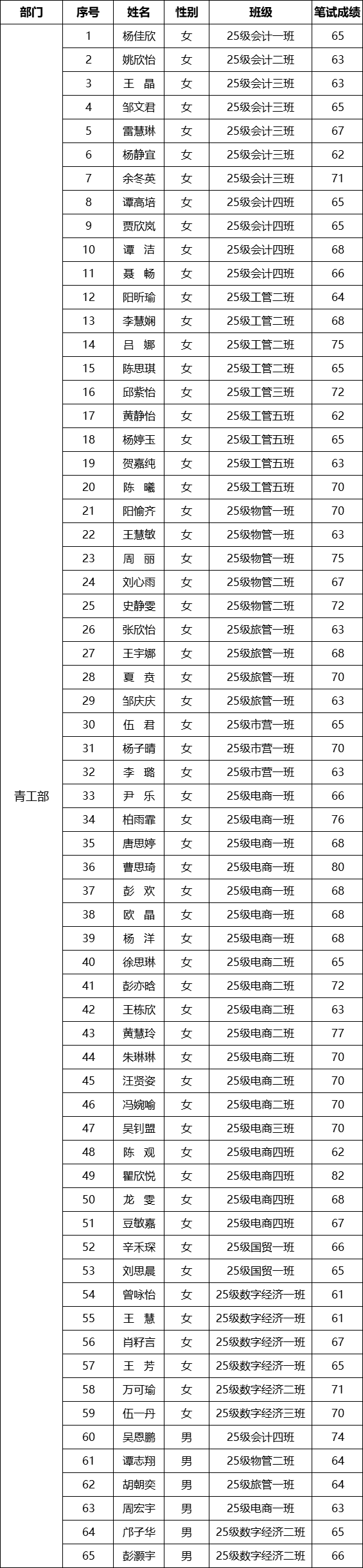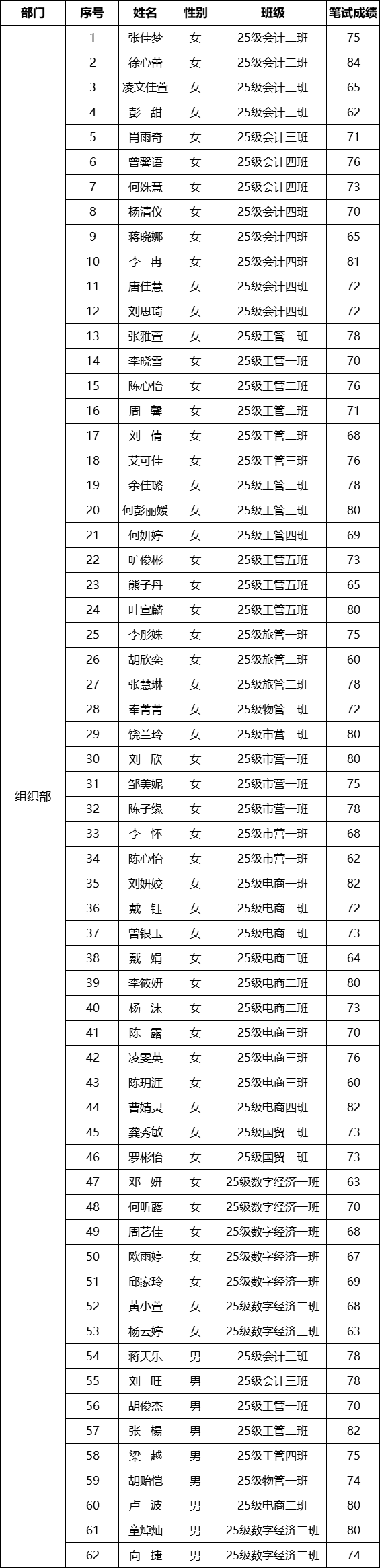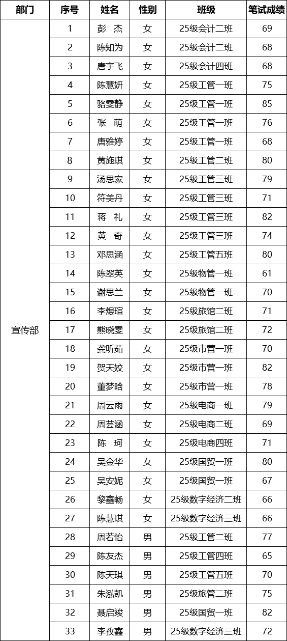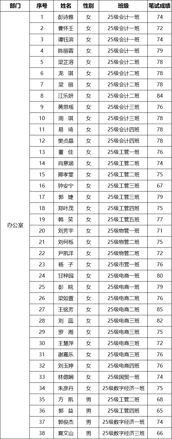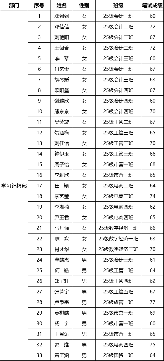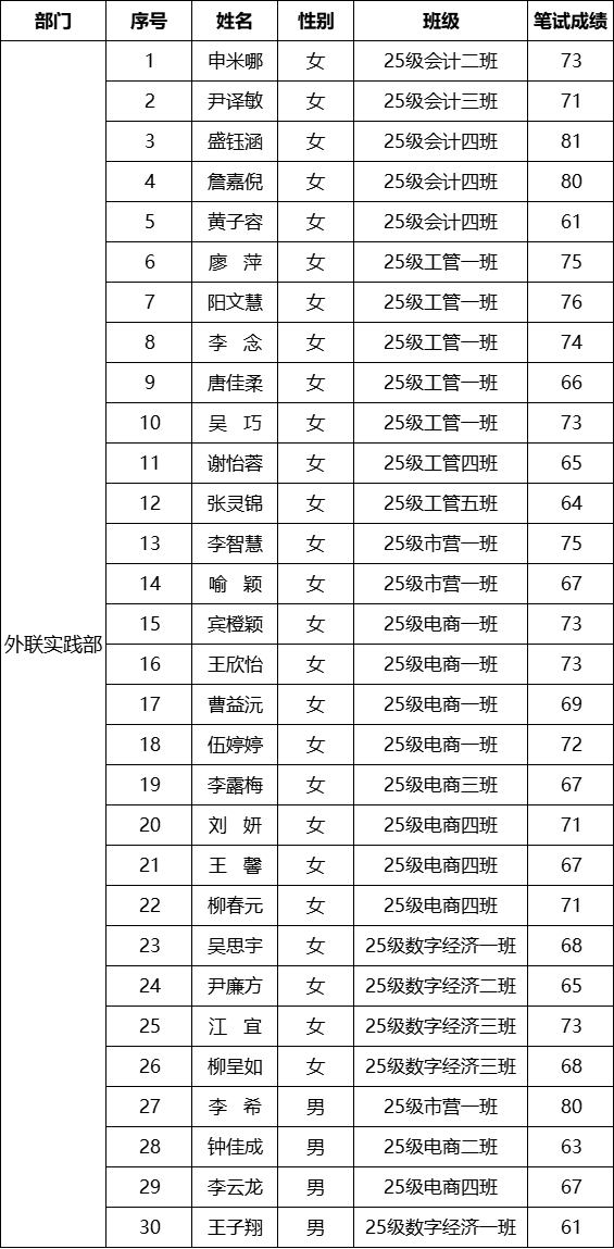 经济管理学院第十六届团总支学生会招新基础笔试通过人员名单