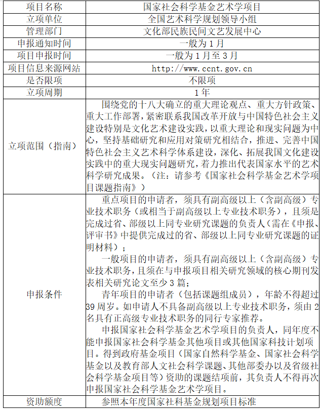 国家社会科学基金艺术学项目申报与管理简介